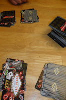 As you are playing you need to keep track of your board. Once you hit 7 cards of the same you must pull it into a set. A Black set has some combination of jokers and face cards. If you have this type put the cards in a pile with a black card of your number on top. You may still add as many more cards of that number as you can get, just put them under the top card. For example if I had 5 Aces and 2 wilds, I would pull them into a stack with a black Ace on top and every Ace me, or my partner, got would go in that pile but under the top card. At this point you can no longer put wilds in that set. There is a maximum of 3 wilds for each black set on your boards.